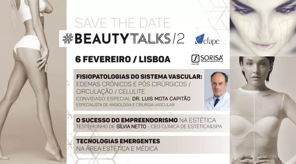 Com um Convidado muito especial » o Dr.Luis Mota Capitão Especialista de Angiologia e Cirurgia Vascular, ex Diretor do Hospital Santa Marta e Médico interno do Hospital CUF das Descobertas, que vai expor como o Diagnóstico, Manutenção e Tratamento das Fisiopatologias do Sistema Vascular: Edemas Crónicos e Pós Cirurgicos/Circulação/Celulite deve ser aplicado no incremento da eficácia na Estética Profissional.
